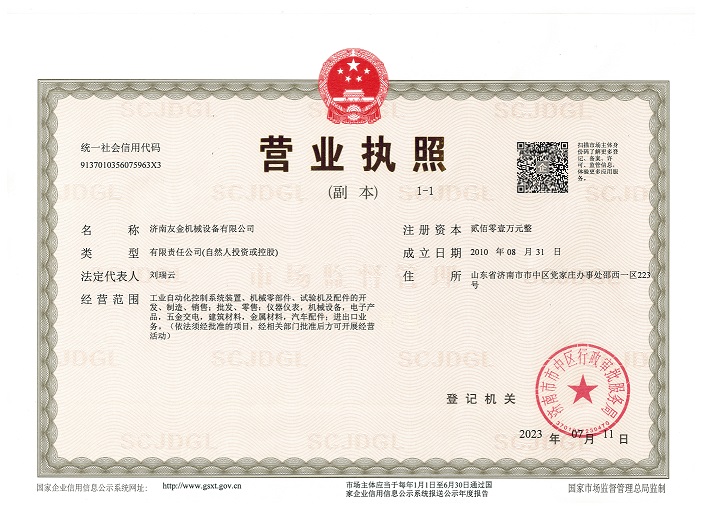 濟(jì)南友金機(jī)械設(shè)備有限公司 地址:濟(jì)南市市中區(qū)黨家辦事處邵西一區(qū)223號  電話:0531-85895266 傳真:0531-87926347